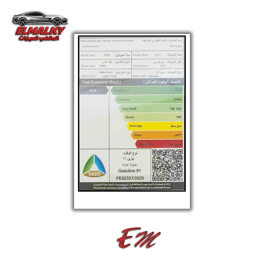 تويوتا انوفا GL 2.0 هايبرد 2026