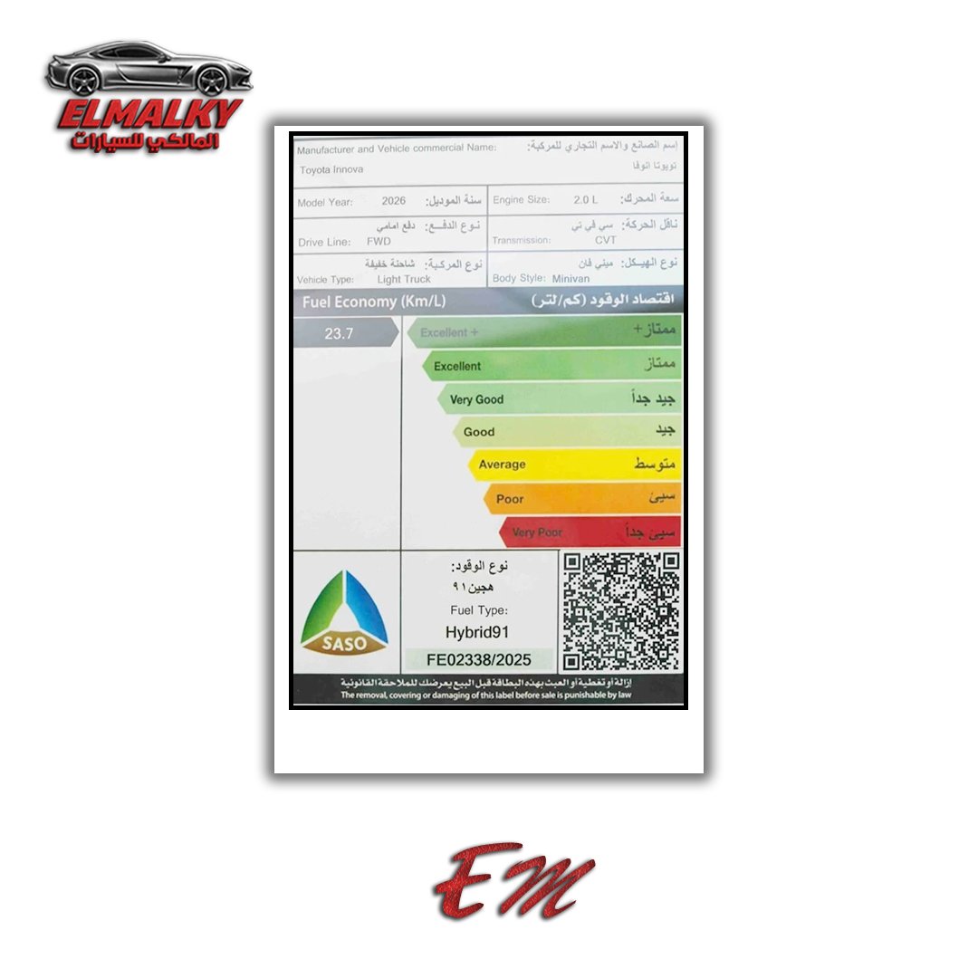 | نوع السيارة | تويوتا إنوفا |