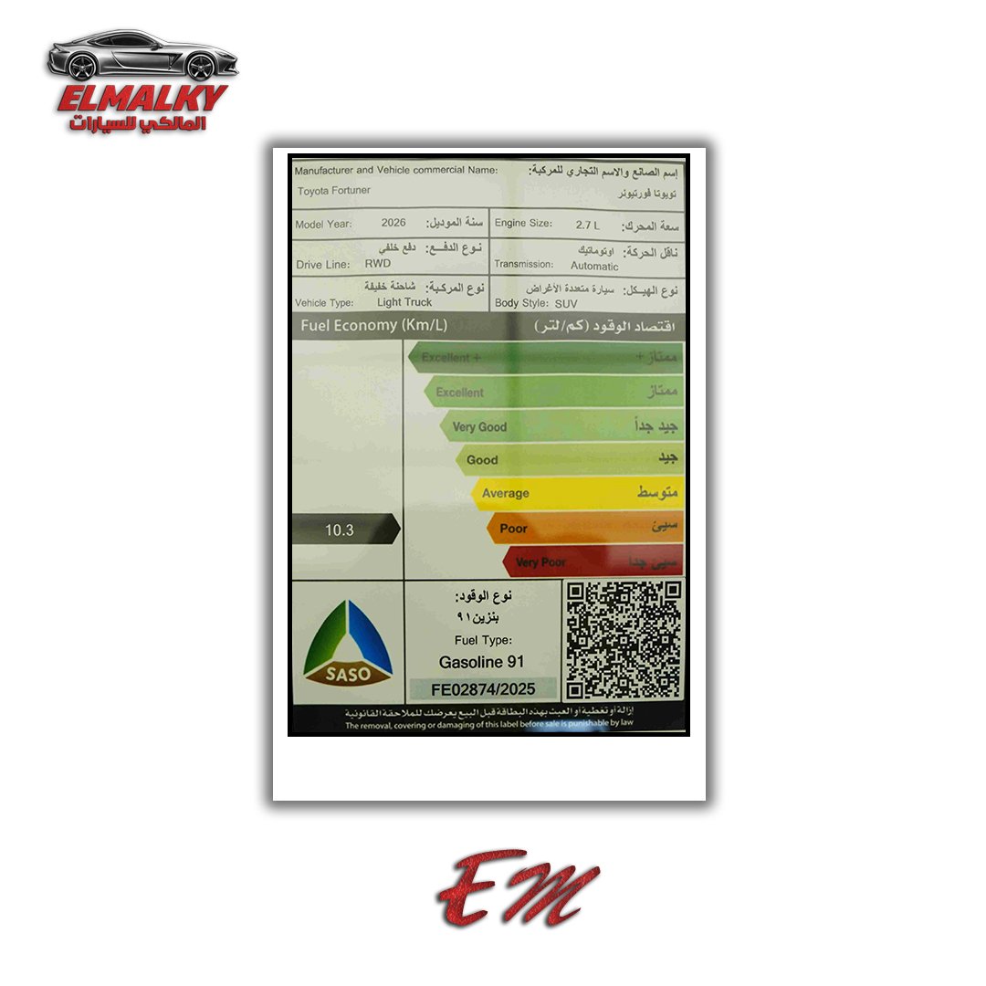 | نوع السيارة | تويوتا فورتشنر |