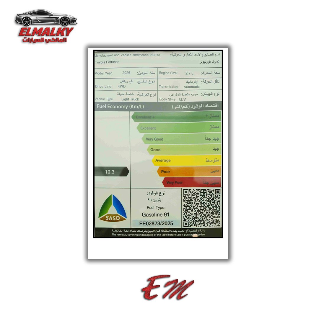 تويوتا فورتشنر GX2 بدون دبل بنزين 2026